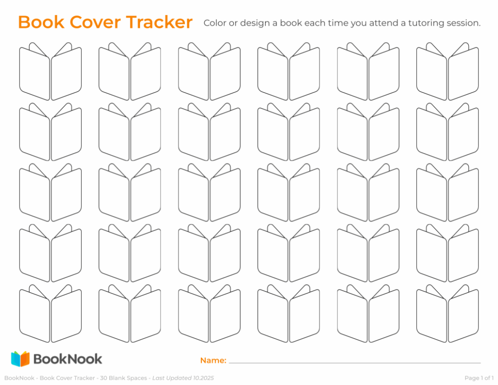 ✔Use as a motivator – set a goal for a small celebration when a row or full tracker is complete. Combine with other incentives like stickers, verbal shoutouts, or BookNook bookmarks.