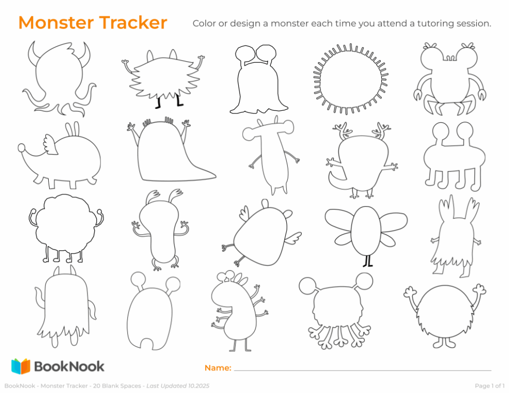 ✔Use as a motivator – set a goal for a small celebration when a row or full tracker is complete. Combine with other incentives like stickers, verbal shoutouts, or BookNook bookmarks.
