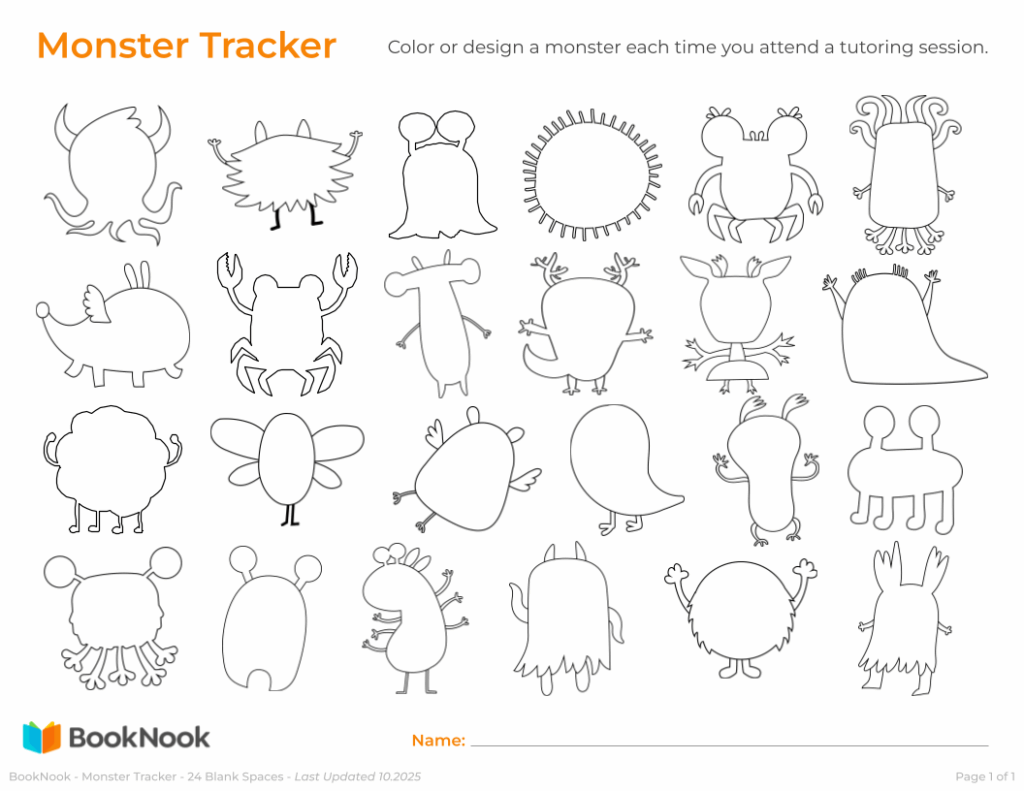 Use as a motivator – set a goal for a small celebration when a row or full tracker is complete. Combine with other incentives like stickers, verbal shoutouts, or BookNook bookmarks.