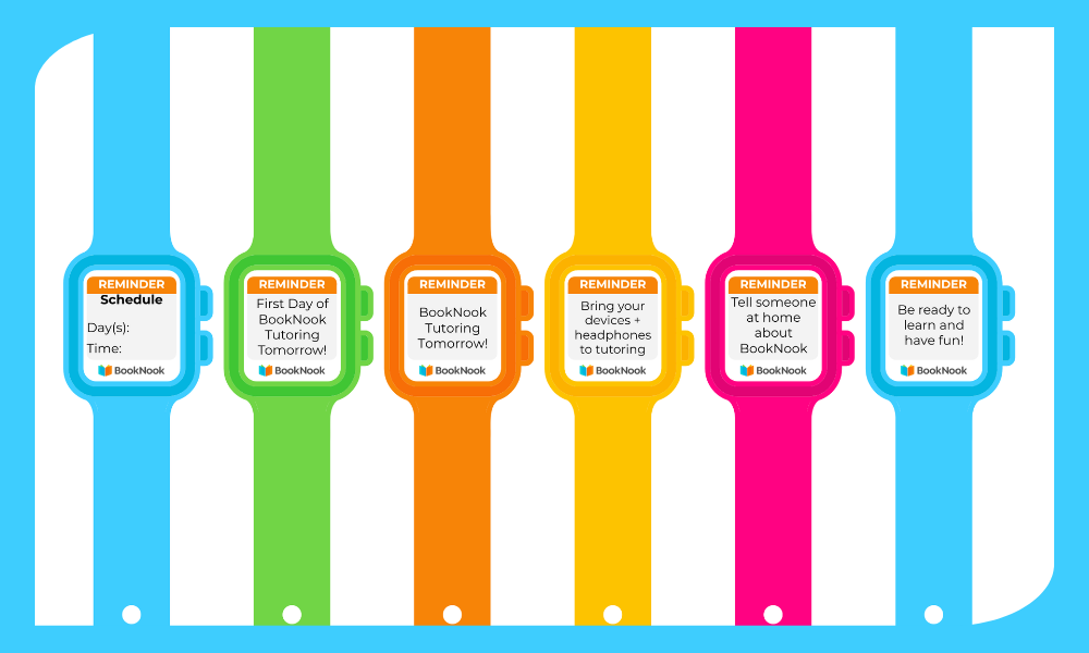 Use this set of BookNook Student Smartwatches to remind students of upcoming BookNook sessions, materials needed, expectations, and more.